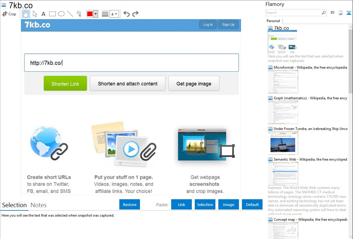 Flamory helps you capture and store screenshots from 7kb.co by pressing a single hotkey. It will be saved to a history, so you can continue doing your tasks without interruptions. Later, you can edit the screenshot: crop, resize, add labels and highlights. After that, you can paste the screenshot into any other document or e-mail message.
