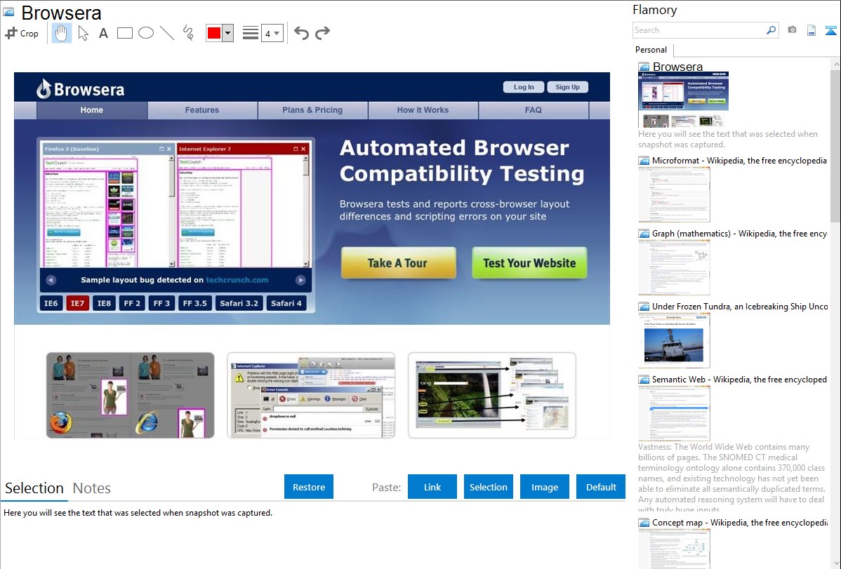 Flamory helps you capture and store screenshots from Browsera by pressing a single hotkey. It will be saved to a history, so you can continue doing your tasks without interruptions. Later, you can edit the screenshot: crop, resize, add labels and highlights. After that, you can paste the screenshot into any other document or e-mail message.