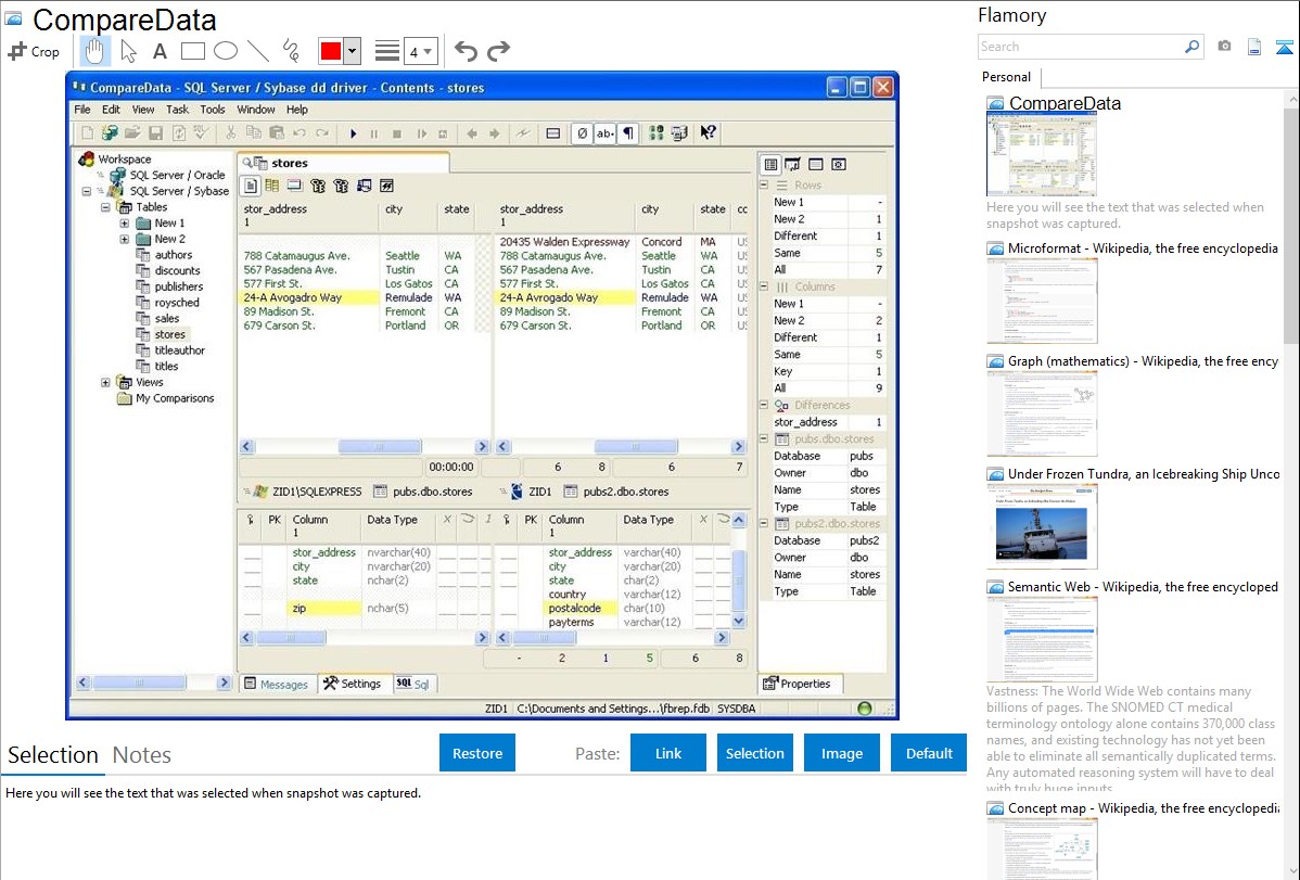 Flamory helps you capture and store screenshots from CompareData by pressing a single hotkey. It will be saved to a history, so you can continue doing your tasks without interruptions. Later, you can edit the screenshot: crop, resize, add labels and highlights. After that, you can paste the screenshot into any other document or e-mail message.