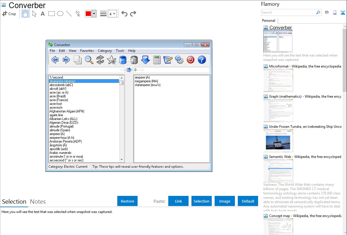 Flamory helps you capture and store screenshots from Converber by pressing a single hotkey. It will be saved to a history, so you can continue doing your tasks without interruptions. Later, you can edit the screenshot: crop, resize, add labels and highlights. After that, you can paste the screenshot into any other document or e-mail message.