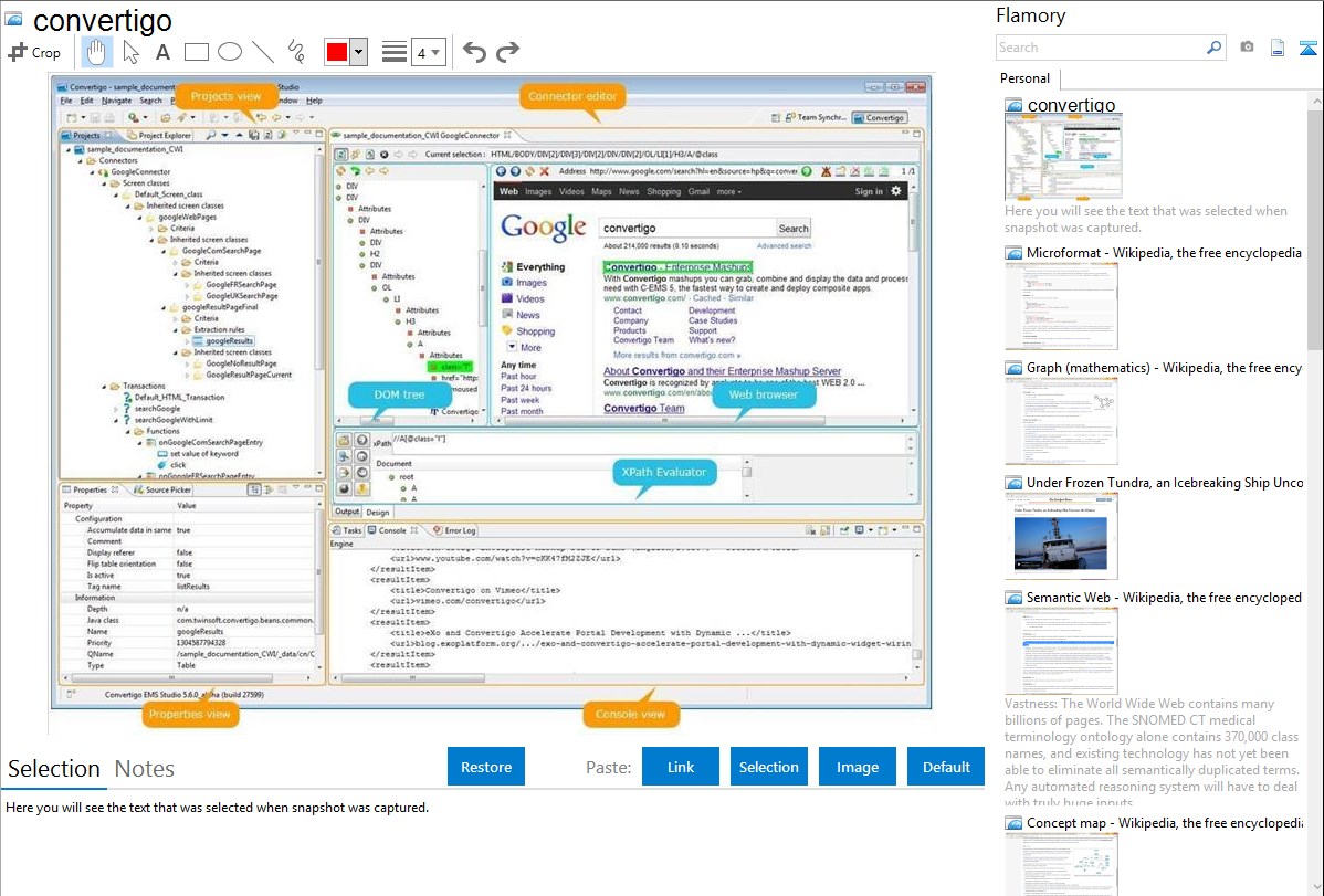 Flamory helps you capture and store screenshots from convertigo by pressing a single hotkey. It will be saved to a history, so you can continue doing your tasks without interruptions. Later, you can edit the screenshot: crop, resize, add labels and highlights. After that, you can paste the screenshot into any other document or e-mail message.