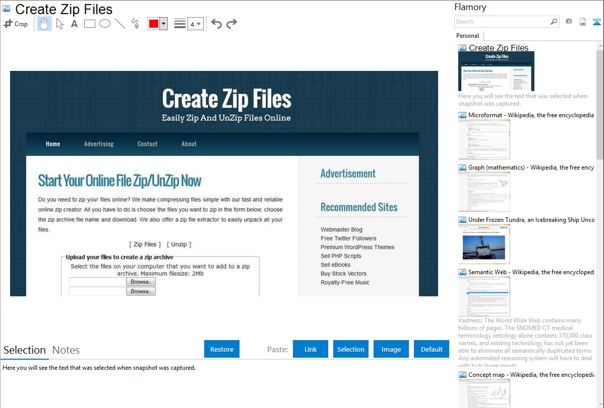 Flamory provides advanced bookmarking for Create Zip Files. It captures screen, selection, text on the page and other context. You can find this bookmark later using search by page content or looking through thumbnail list.