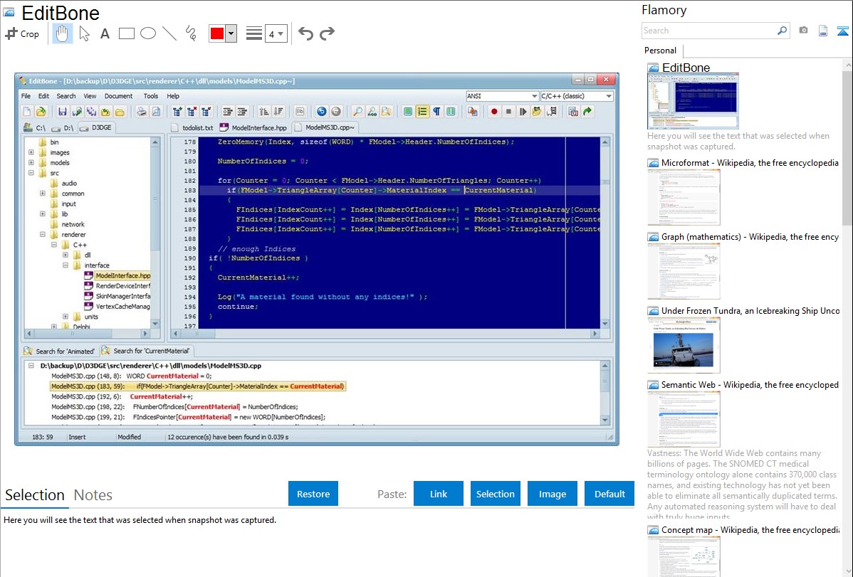 Flamory helps you capture and store screenshots from EditBone by pressing a single hotkey. It will be saved to a history, so you can continue doing your tasks without interruptions. Later, you can edit the screenshot: crop, resize, add labels and highlights. After that, you can paste the screenshot into any other document or e-mail message.