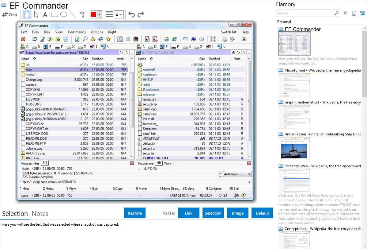 Flamory helps you capture and store screenshots from EF Commander by pressing a single hotkey. It will be saved to a history, so you can continue doing your tasks without interruptions. Later, you can edit the screenshot: crop, resize, add labels and highlights. After that, you can paste the screenshot into any other document or e-mail message.