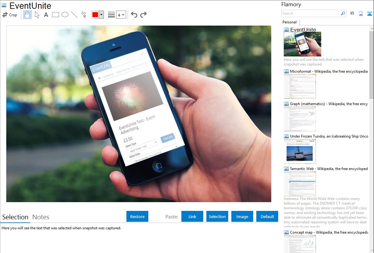Flamory helps you capture and store screenshots from EventUnite by pressing a single hotkey. It will be saved to a history, so you can continue doing your tasks without interruptions. Later, you can edit the screenshot: crop, resize, add labels and highlights. After that, you can paste the screenshot into any other document or e-mail message.