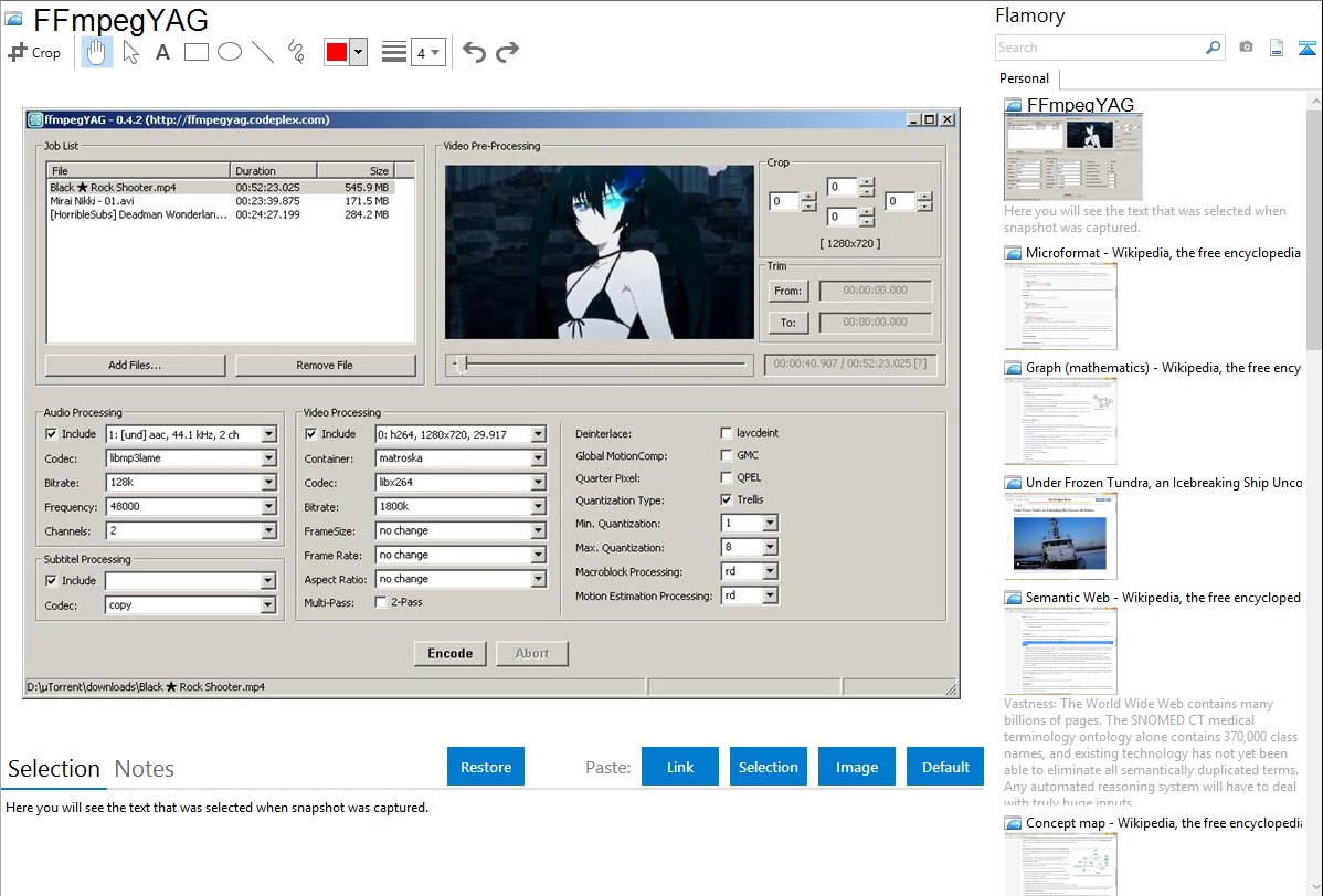 Here is how FFmpegYAG snapshot can look like. Get Flamory and try this on your computer.