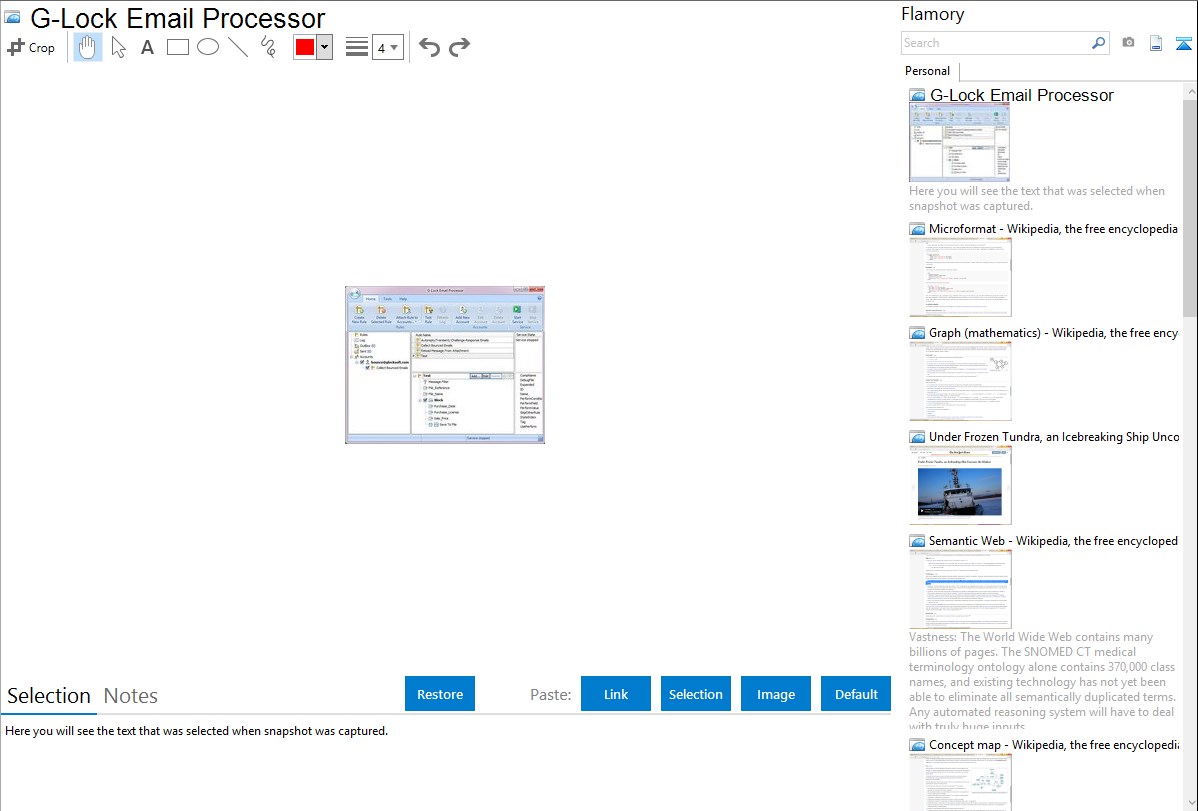 Flamory helps you capture and store screenshots from G-Lock Email Processor by pressing a single hotkey. It will be saved to a history, so you can continue doing your tasks without interruptions. Later, you can edit the screenshot: crop, resize, add labels and highlights. After that, you can paste the screenshot into any other document or e-mail message.