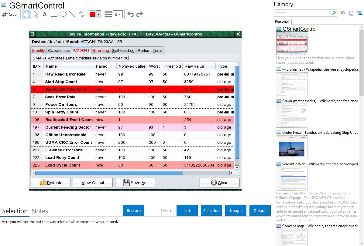 Here is how GSmartControl snapshot can look like. Get Flamory and try this on your computer.