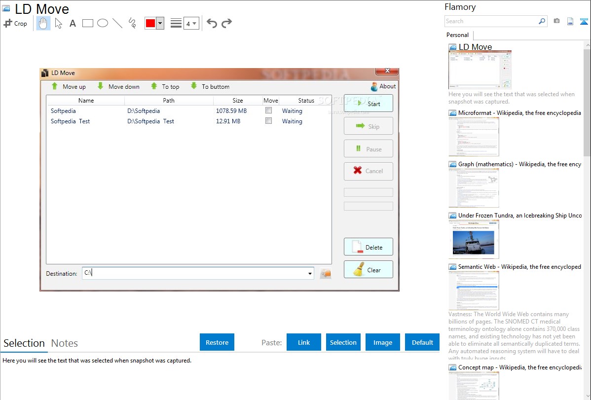 Flamory helps you capture and store screenshots from LD Move by pressing a single hotkey. It will be saved to a history, so you can continue doing your tasks without interruptions. Later, you can edit the screenshot: crop, resize, add labels and highlights. After that, you can paste the screenshot into any other document or e-mail message.