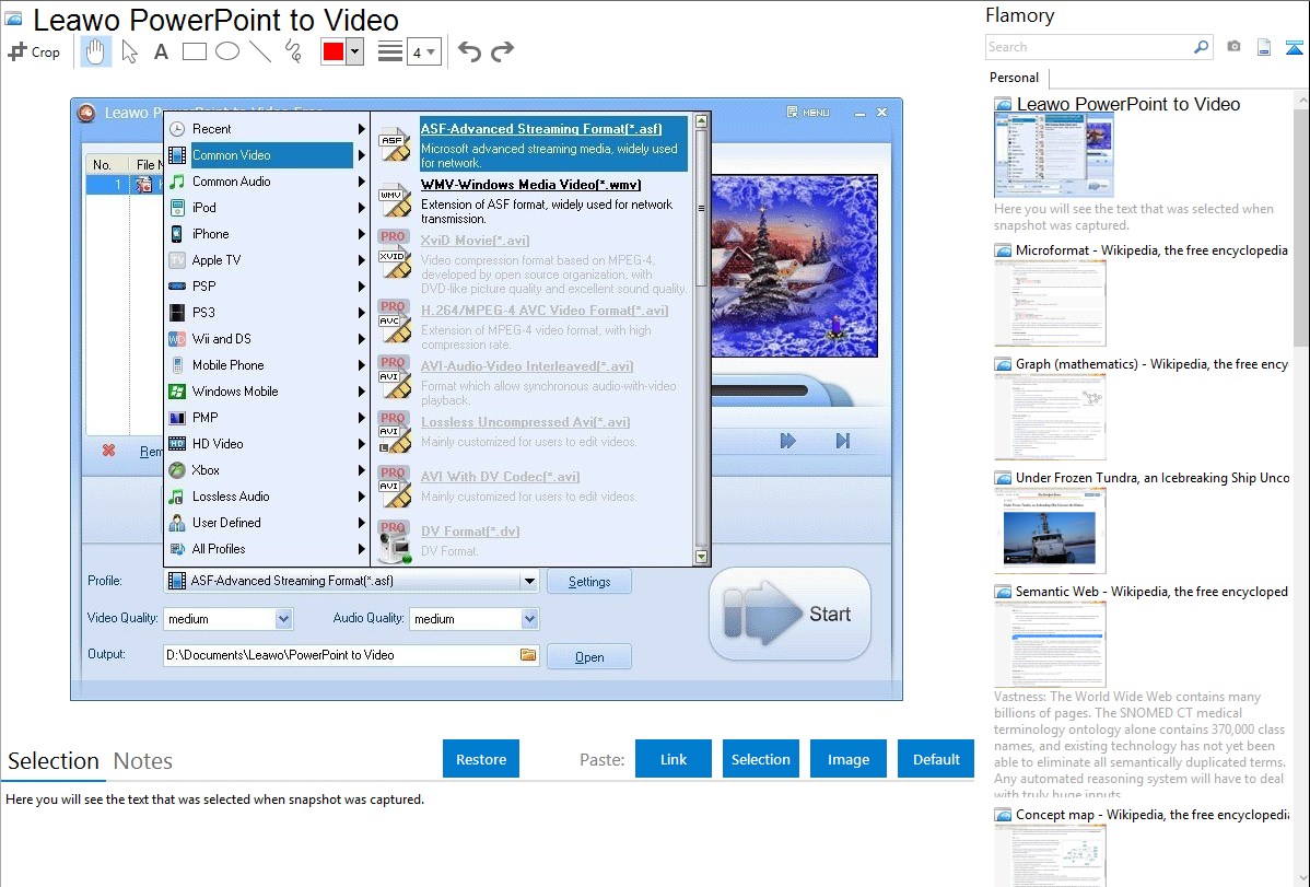 Flamory helps you capture and store screenshots from Leawo PowerPoint to Video by pressing a single hotkey. It will be saved to a history, so you can continue doing your tasks without interruptions. Later, you can edit the screenshot: crop, resize, add labels and highlights. After that, you can paste the screenshot into any other document or e-mail message.