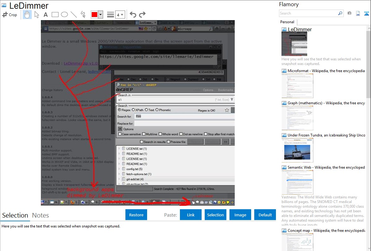 Flamory helps you capture and store screenshots from LeDimmer by pressing a single hotkey. It will be saved to a history, so you can continue doing your tasks without interruptions. Later, you can edit the screenshot: crop, resize, add labels and highlights. After that, you can paste the screenshot into any other document or e-mail message.