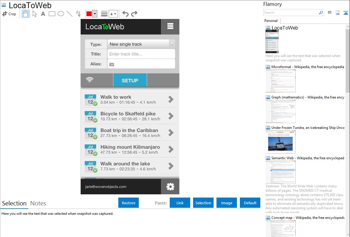 Flamory helps you capture and store screenshots from LocaToWeb by pressing a single hotkey. It will be saved to a history, so you can continue doing your tasks without interruptions. Later, you can edit the screenshot: crop, resize, add labels and highlights. After that, you can paste the screenshot into any other document or e-mail message.