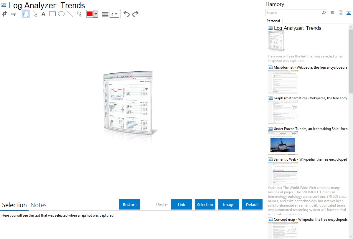 Flamory helps you capture and store screenshots from Log Analyzer: Trends by pressing a single hotkey. It will be saved to a history, so you can continue doing your tasks without interruptions. Later, you can edit the screenshot: crop, resize, add labels and highlights. After that, you can paste the screenshot into any other document or e-mail message.