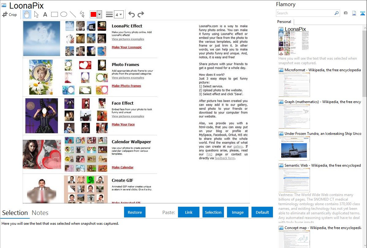 Flamory helps you capture and store screenshots from LoonaPix by pressing a single hotkey. It will be saved to a history, so you can continue doing your tasks without interruptions. Later, you can edit the screenshot: crop, resize, add labels and highlights. After that, you can paste the screenshot into any other document or e-mail message.