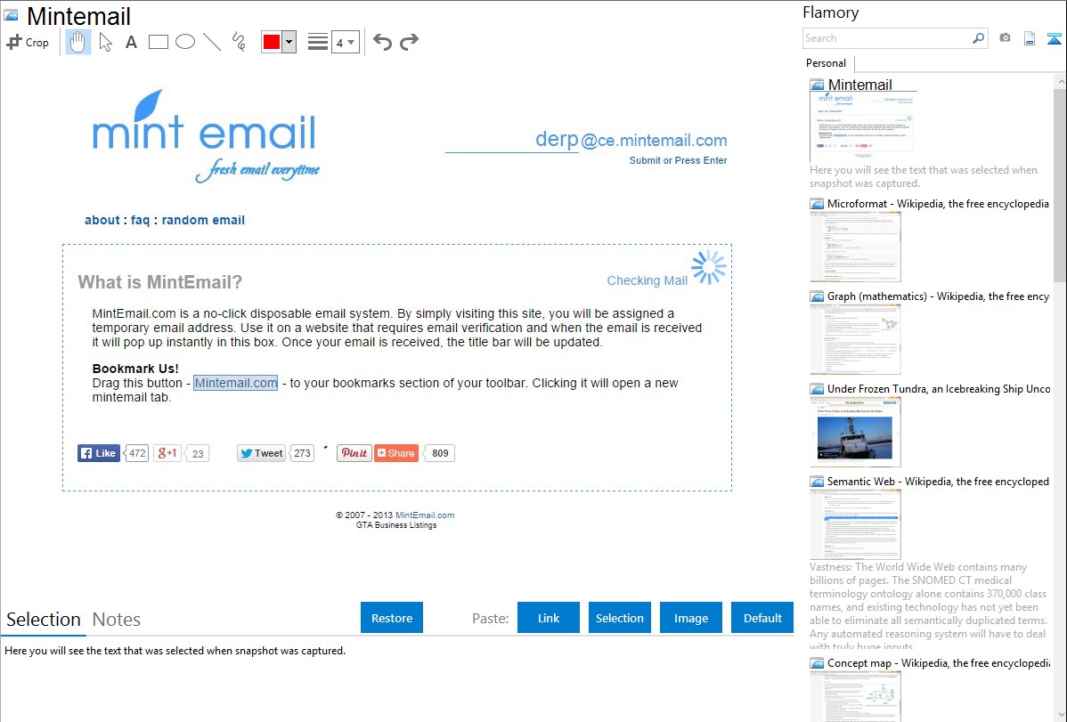 Flamory helps you capture and store screenshots from Mintemail by pressing a single hotkey. It will be saved to a history, so you can continue doing your tasks without interruptions. Later, you can edit the screenshot: crop, resize, add labels and highlights. After that, you can paste the screenshot into any other document or e-mail message.