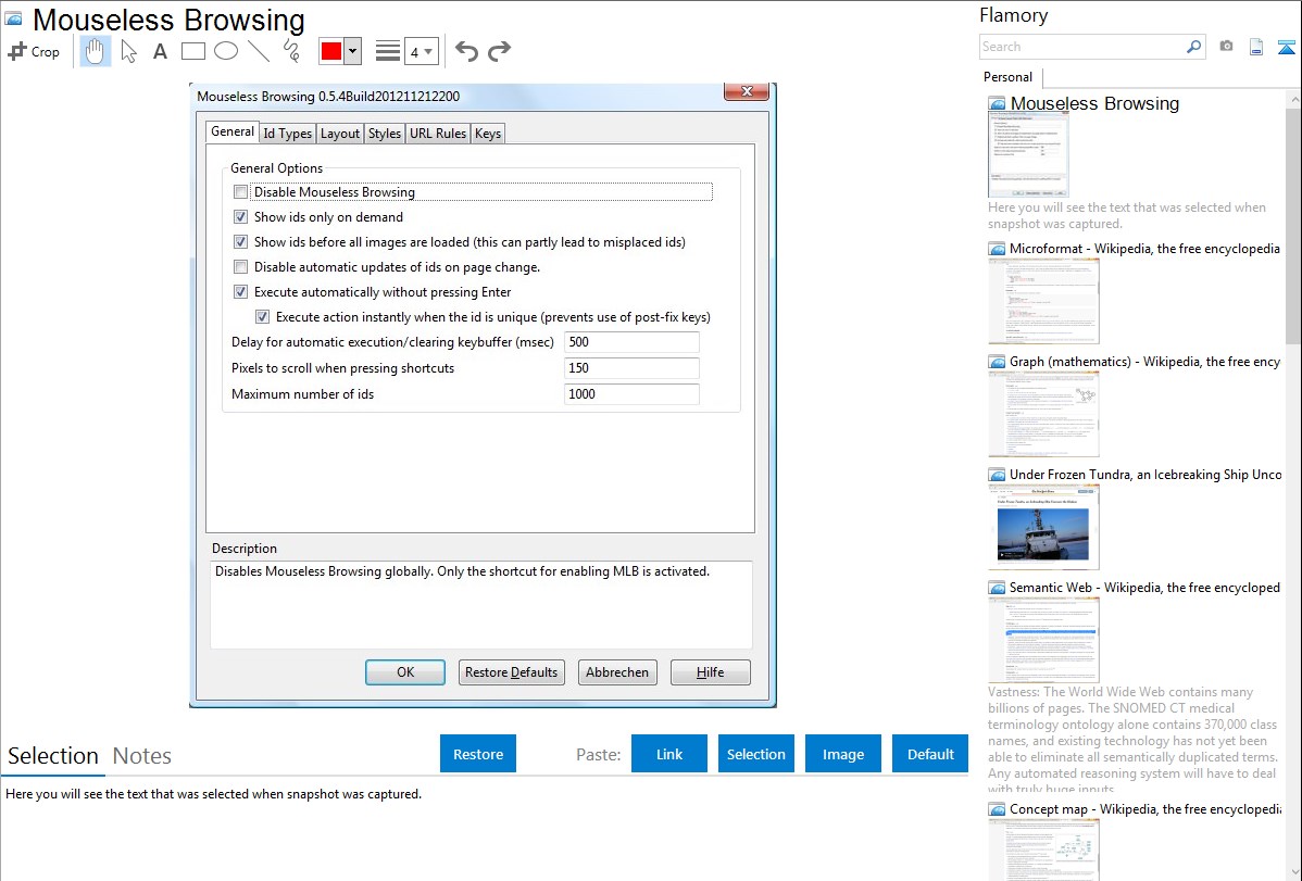 Here is how Mouseless Browsing snapshot can look like. Get Flamory and try this on your computer.