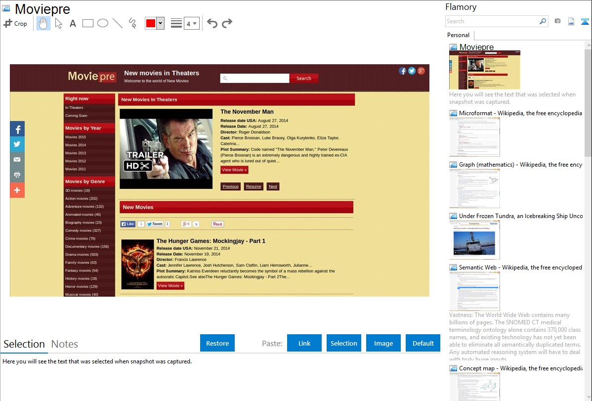 Flamory provides advanced bookmarking for Moviepre. It captures screen, selection, text on the page and other context. You can find this bookmark later using search by page content or looking through thumbnail list.