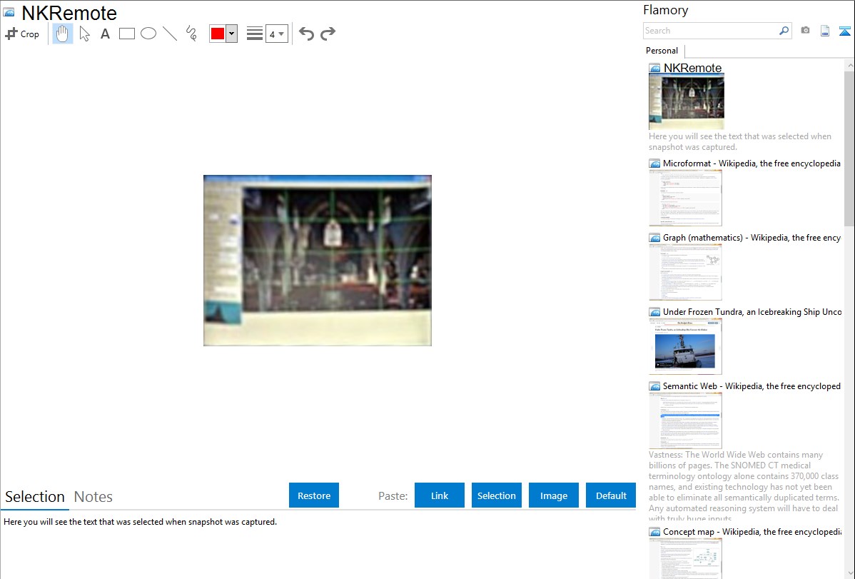 Flamory helps you capture and store screenshots from NKRemote by pressing a single hotkey. It will be saved to a history, so you can continue doing your tasks without interruptions. Later, you can edit the screenshot: crop, resize, add labels and highlights. After that, you can paste the screenshot into any other document or e-mail message.