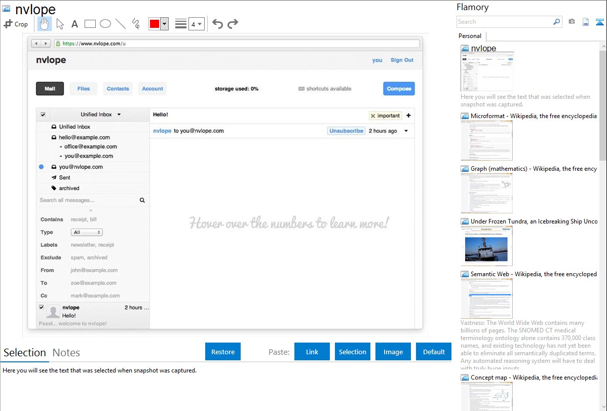 Flamory helps you capture and store screenshots from nvlope by pressing a single hotkey. It will be saved to a history, so you can continue doing your tasks without interruptions. Later, you can edit the screenshot: crop, resize, add labels and highlights. After that, you can paste the screenshot into any other document or e-mail message.