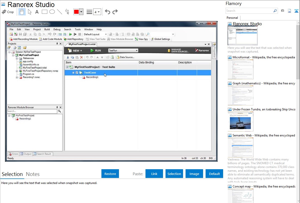 Here is how Ranorex Studio snapshot can look like. Get Flamory and try this on your computer.