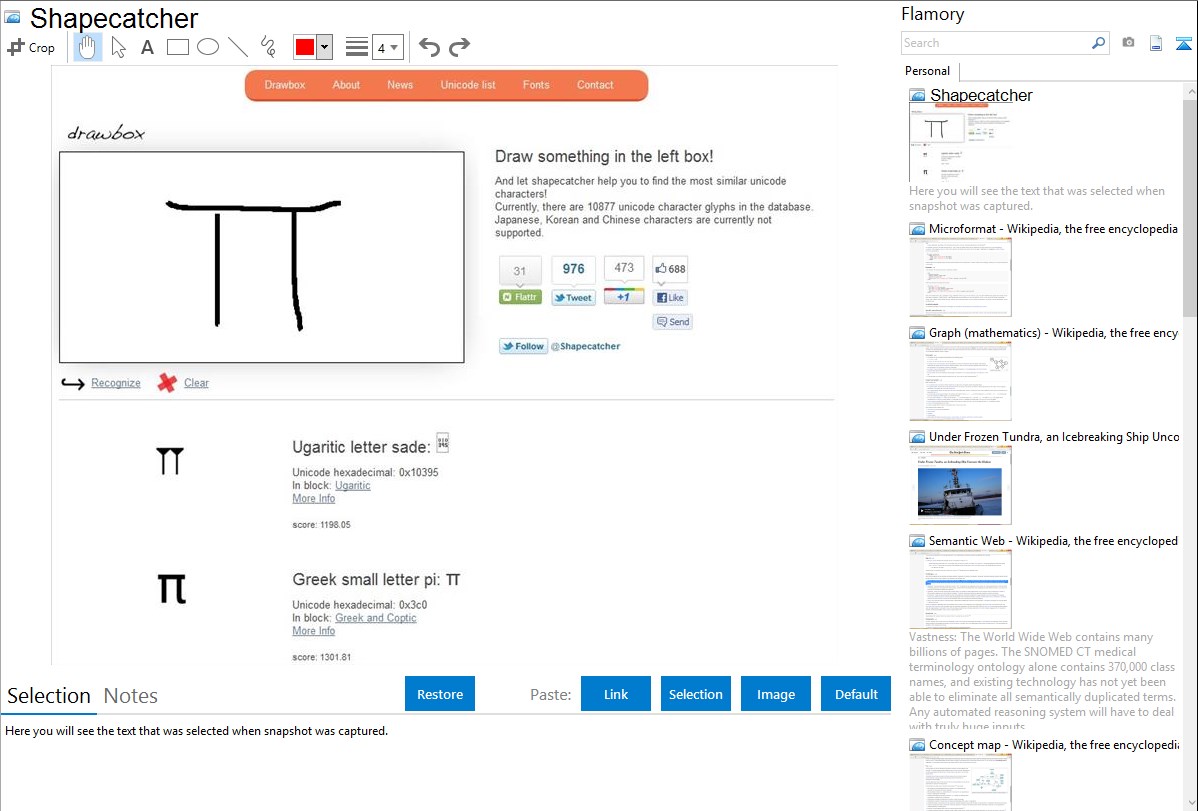 Flamory provides advanced bookmarking for Shapecatcher. It captures screen, selection, text on the page and other context. You can find this bookmark later using search by page content or looking through thumbnail list.