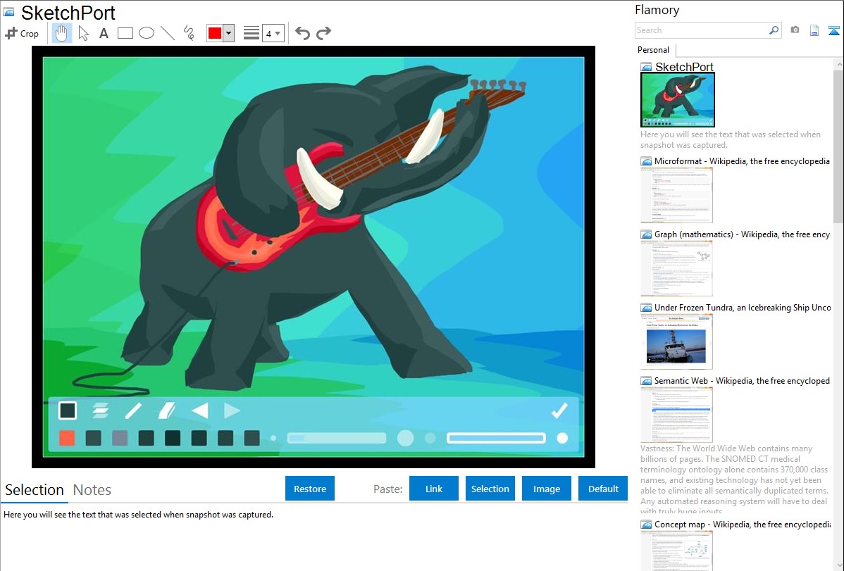 Flamory helps you capture and store screenshots from SketchPort by pressing a single hotkey. It will be saved to a history, so you can continue doing your tasks without interruptions. Later, you can edit the screenshot: crop, resize, add labels and highlights. After that, you can paste the screenshot into any other document or e-mail message.