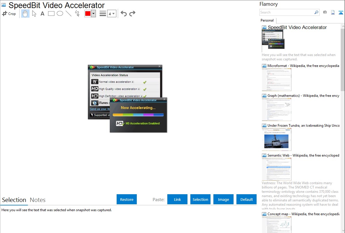 Flamory helps you capture and store screenshots from SpeedBit Video Accelerator by pressing a single hotkey. It will be saved to a history, so you can continue doing your tasks without interruptions. Later, you can edit the screenshot: crop, resize, add labels and highlights. After that, you can paste the screenshot into any other document or e-mail message.