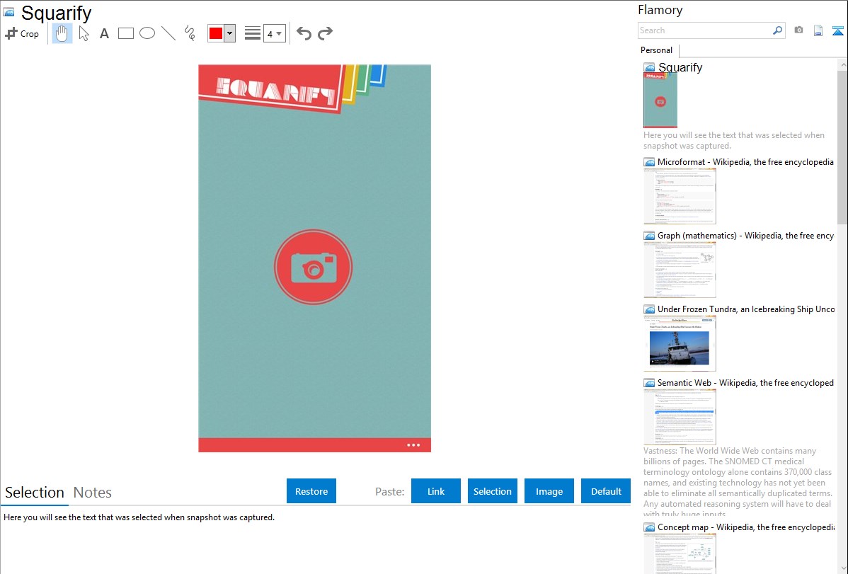 Flamory helps you capture and store screenshots from Squarify by pressing a single hotkey. It will be saved to a history, so you can continue doing your tasks without interruptions. Later, you can edit the screenshot: crop, resize, add labels and highlights. After that, you can paste the screenshot into any other document or e-mail message.