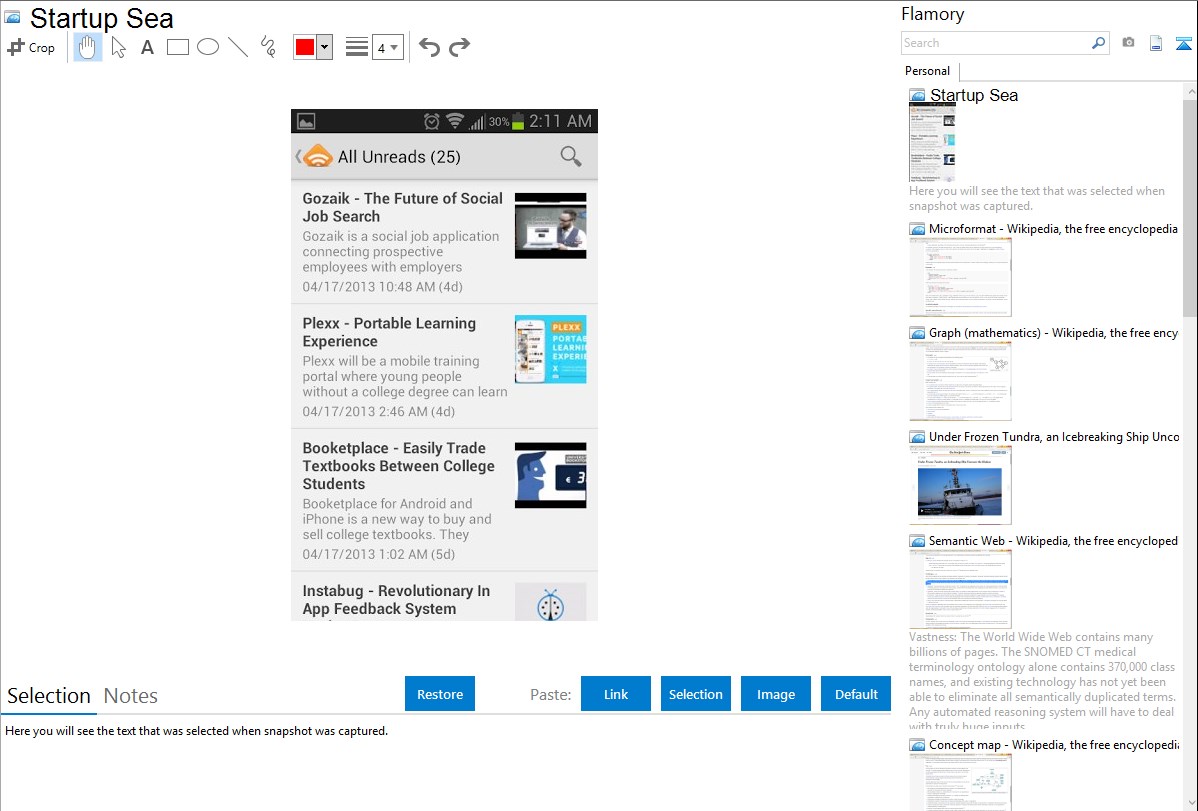 Flamory helps you capture and store screenshots from Startup Sea by pressing a single hotkey. It will be saved to a history, so you can continue doing your tasks without interruptions. Later, you can edit the screenshot: crop, resize, add labels and highlights. After that, you can paste the screenshot into any other document or e-mail message.