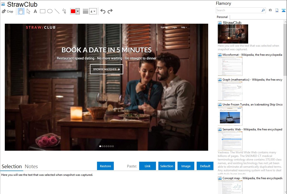 Flamory helps you capture and store screenshots from StrawClub by pressing a single hotkey. It will be saved to a history, so you can continue doing your tasks without interruptions. Later, you can edit the screenshot: crop, resize, add labels and highlights. After that, you can paste the screenshot into any other document or e-mail message.