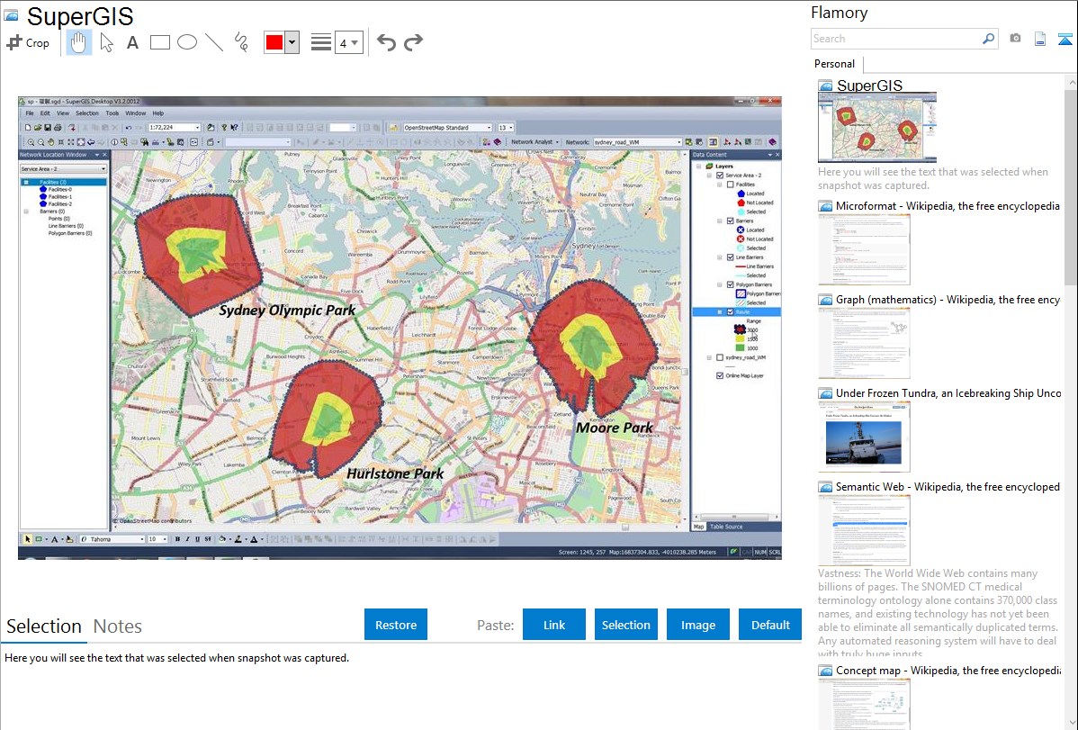 Flamory helps you capture and store screenshots from SuperGIS by pressing a single hotkey. It will be saved to a history, so you can continue doing your tasks without interruptions. Later, you can edit the screenshot: crop, resize, add labels and highlights. After that, you can paste the screenshot into any other document or e-mail message.