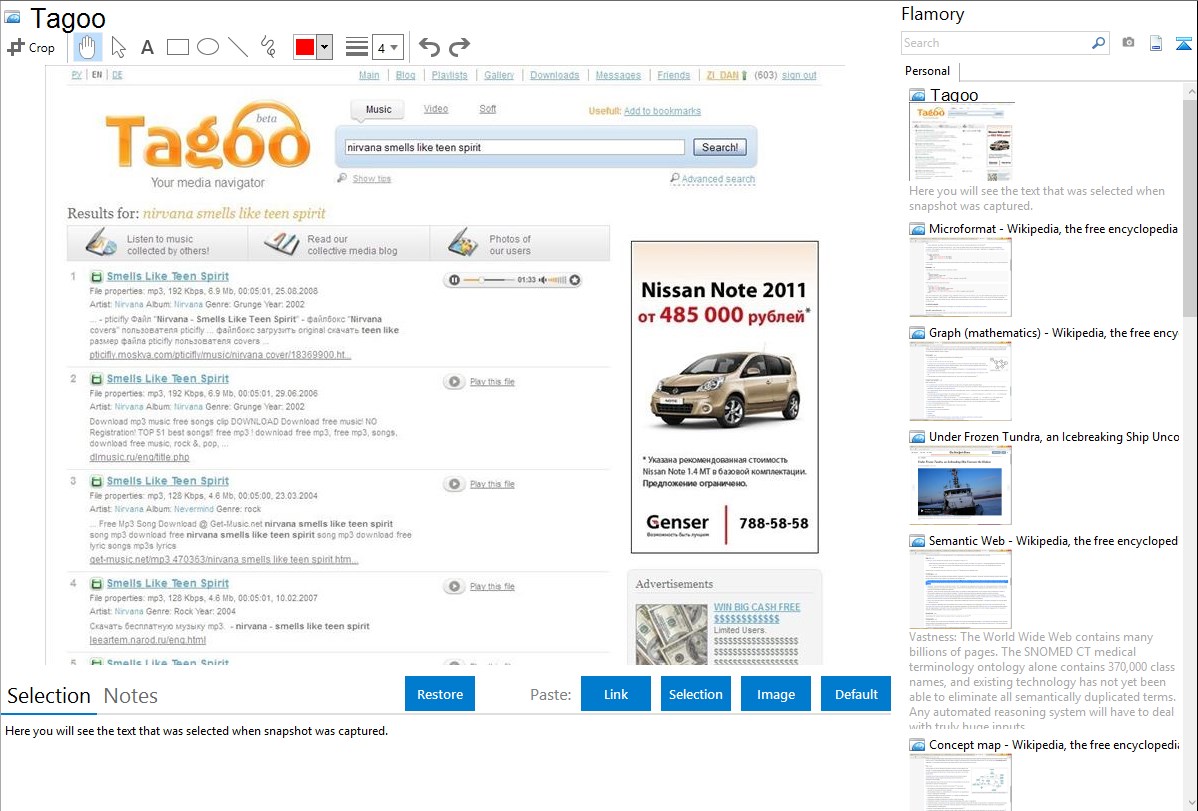 Flamory provides advanced bookmarking for Tagoo. It captures screen, selection, text on the page and other context. You can find this bookmark later using search by page content or looking through thumbnail list.