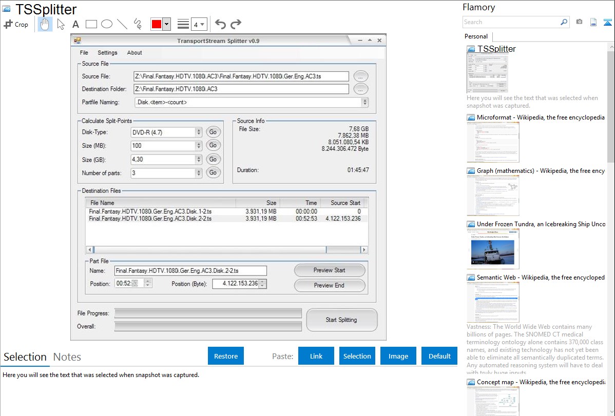 Here is how TSSplitter snapshot can look like. Get Flamory and try this on your computer.
