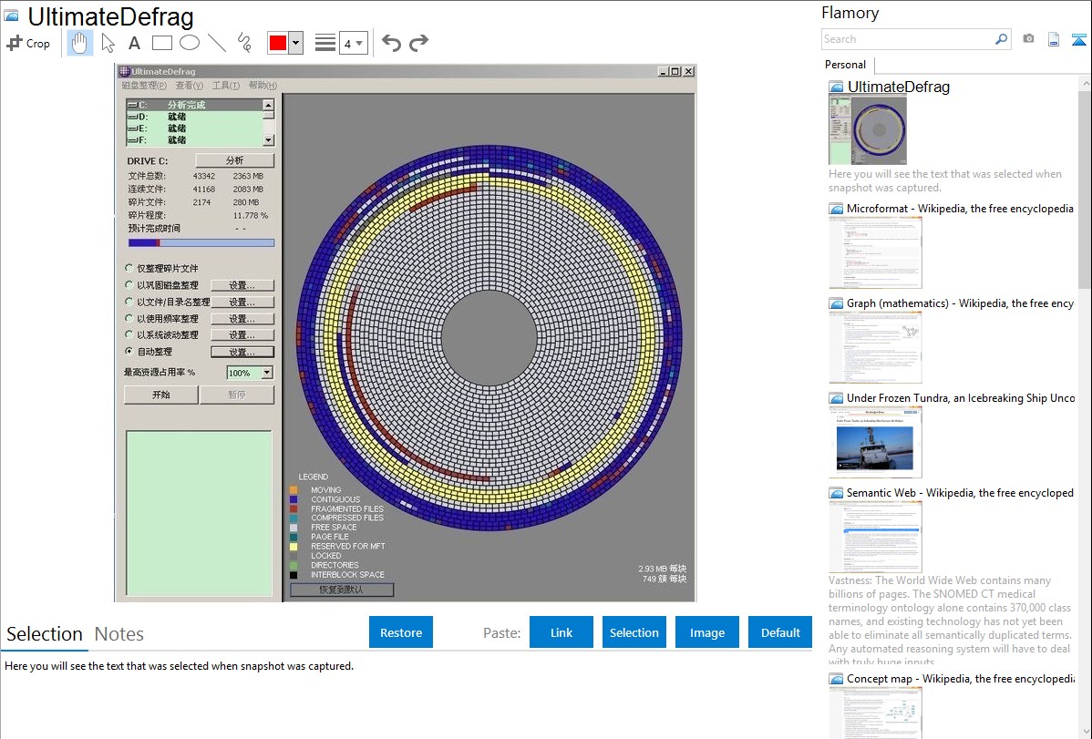 Flamory helps you capture and store screenshots from UltimateDefrag by pressing a single hotkey. It will be saved to a history, so you can continue doing your tasks without interruptions. Later, you can edit the screenshot: crop, resize, add labels and highlights. After that, you can paste the screenshot into any other document or e-mail message.