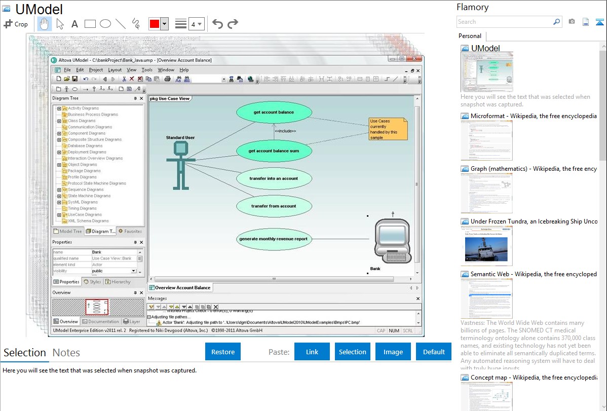 Flamory helps you capture and store screenshots from UModel by pressing a single hotkey. It will be saved to a history, so you can continue doing your tasks without interruptions. Later, you can edit the screenshot: crop, resize, add labels and highlights. After that, you can paste the screenshot into any other document or e-mail message.