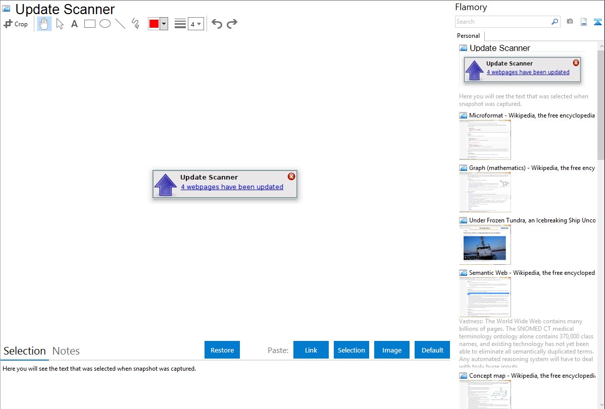 Flamory helps you capture and store screenshots from Update Scanner by pressing a single hotkey. It will be saved to a history, so you can continue doing your tasks without interruptions. Later, you can edit the screenshot: crop, resize, add labels and highlights. After that, you can paste the screenshot into any other document or e-mail message.