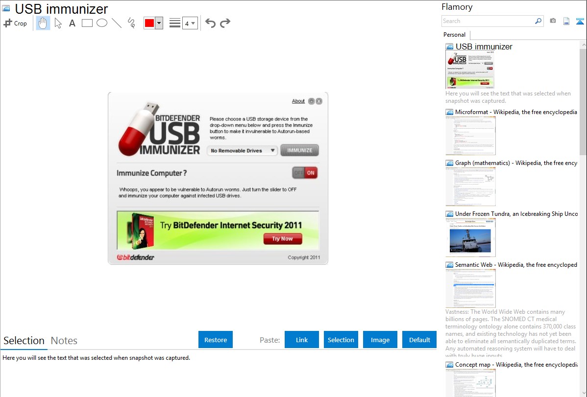 Flamory helps you capture and store screenshots from USB immunizer by pressing a single hotkey. It will be saved to a history, so you can continue doing your tasks without interruptions. Later, you can edit the screenshot: crop, resize, add labels and highlights. After that, you can paste the screenshot into any other document or e-mail message.