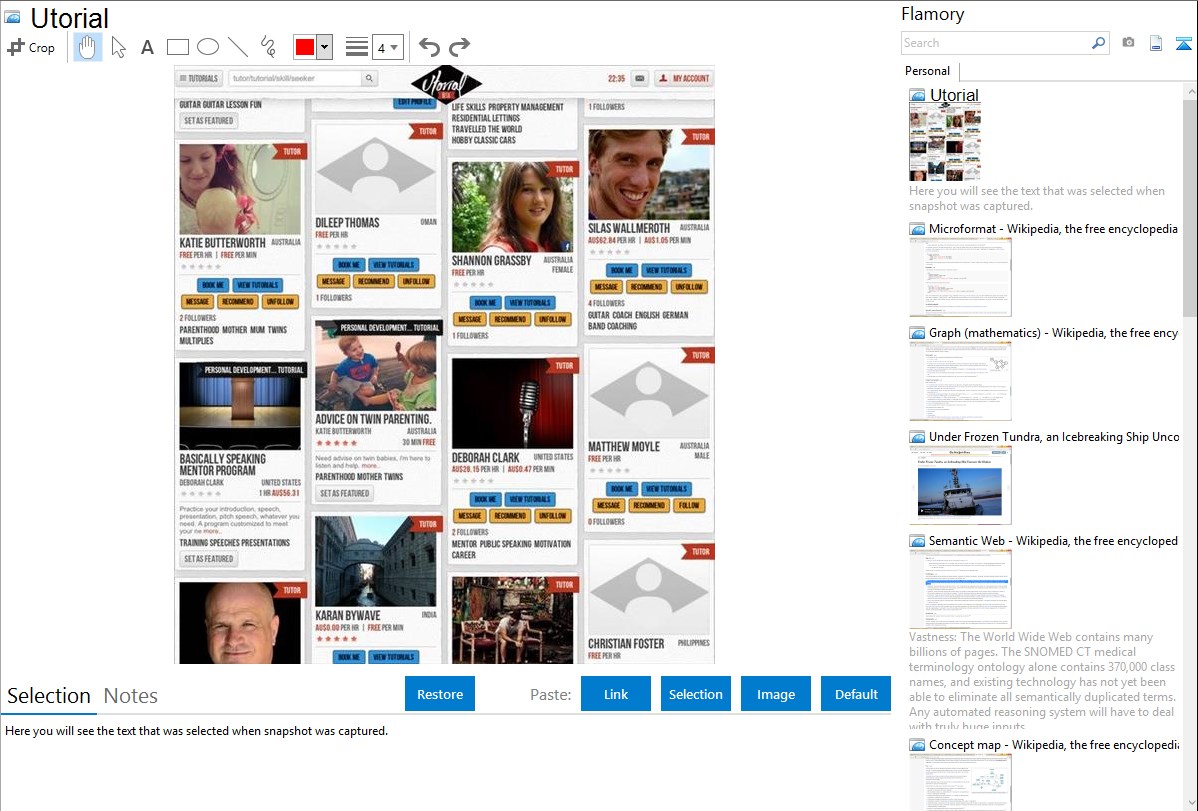 Flamory helps you capture and store screenshots from Utorial by pressing a single hotkey. It will be saved to a history, so you can continue doing your tasks without interruptions. Later, you can edit the screenshot: crop, resize, add labels and highlights. After that, you can paste the screenshot into any other document or e-mail message.