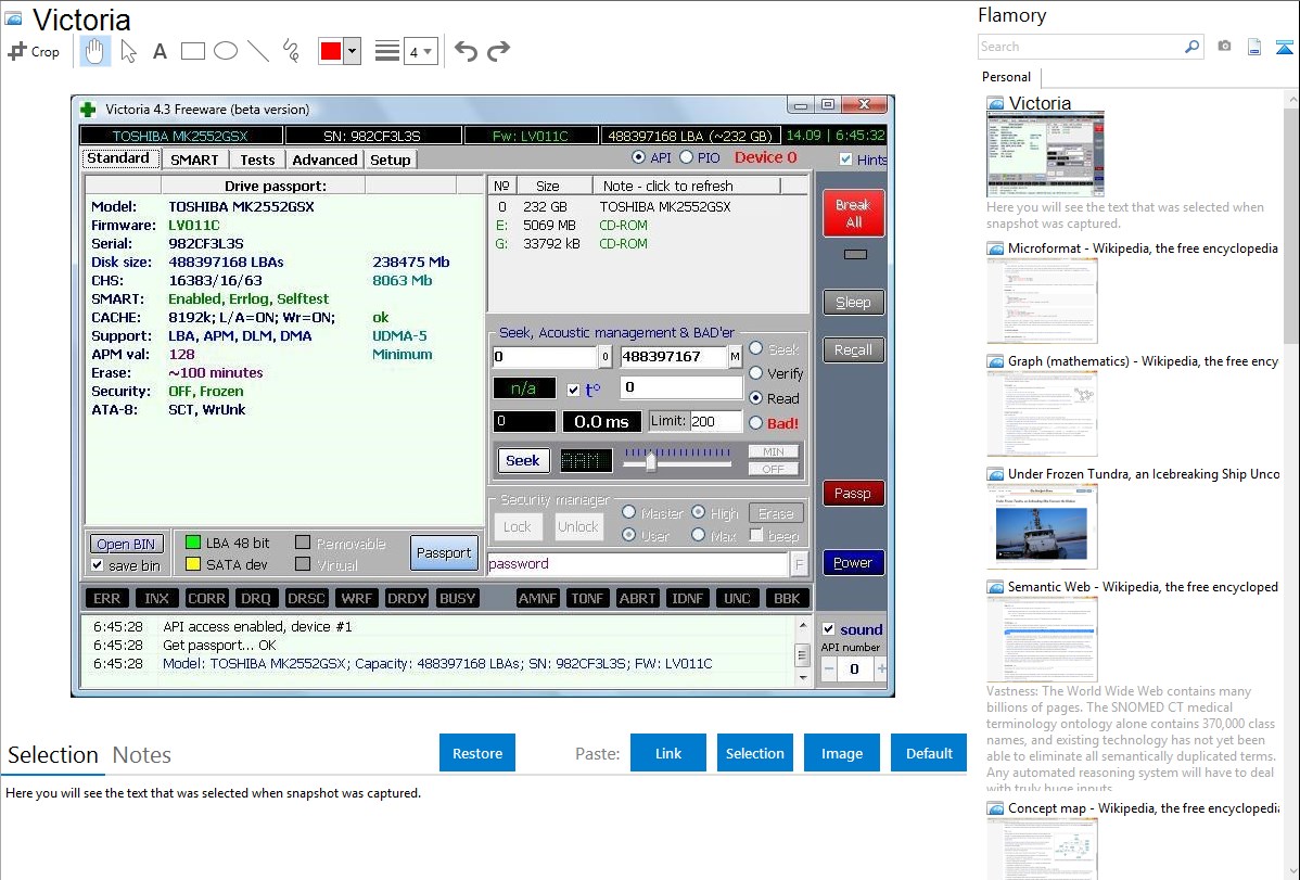 Victoria - An experimental program to work with HDD. Victoria is a small application designed to assess performance, test and perform minor repairs to your IDE drive and SATA HDD. It's designed primarily for HDD repairmen in stationary conditions and is not intended to test the system hard drive. However, compared with the DOS-programs, the utility for Windows provides the following benefits: