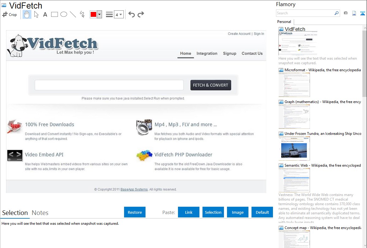 Flamory helps you capture and store screenshots from VidFetch by pressing a single hotkey. It will be saved to a history, so you can continue doing your tasks without interruptions. Later, you can edit the screenshot: crop, resize, add labels and highlights. After that, you can paste the screenshot into any other document or e-mail message.