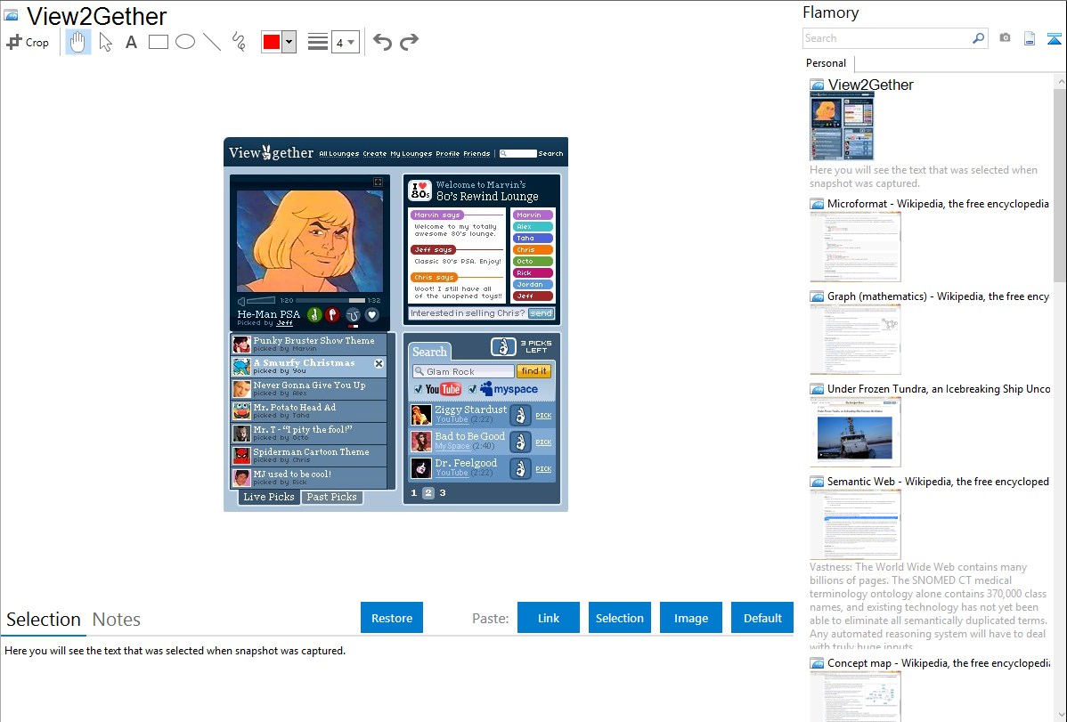 Flamory helps you capture and store screenshots from View2Gether by pressing a single hotkey. It will be saved to a history, so you can continue doing your tasks without interruptions. Later, you can edit the screenshot: crop, resize, add labels and highlights. After that, you can paste the screenshot into any other document or e-mail message.