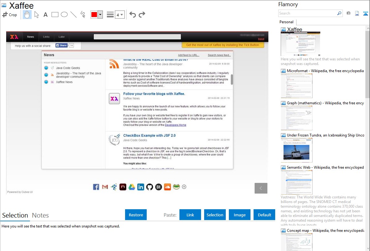 Flamory helps you capture and store screenshots from Xaffee by pressing a single hotkey. It will be saved to a history, so you can continue doing your tasks without interruptions. Later, you can edit the screenshot: crop, resize, add labels and highlights. After that, you can paste the screenshot into any other document or e-mail message.