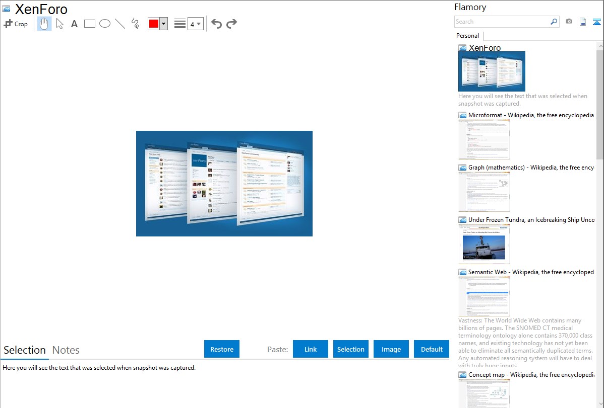 Flamory helps you capture and store screenshots from XenForo by pressing a single hotkey. It will be saved to a history, so you can continue doing your tasks without interruptions. Later, you can edit the screenshot: crop, resize, add labels and highlights. After that, you can paste the screenshot into any other document or e-mail message.