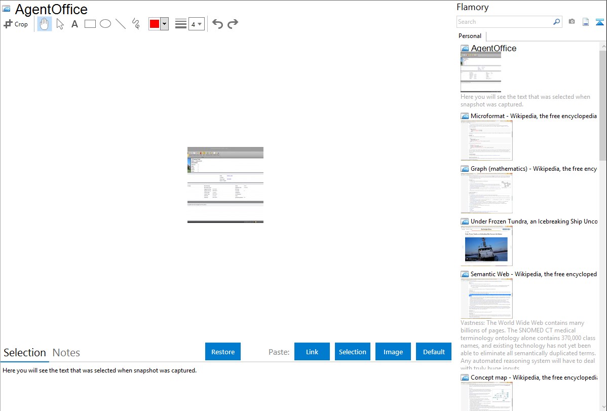 Flamory helps you capture and store screenshots from AgentOffice by pressing a single hotkey. It will be saved to a history, so you can continue doing your tasks without interruptions. Later, you can edit the screenshot: crop, resize, add labels and highlights. After that, you can paste the screenshot into any other document or e-mail message.