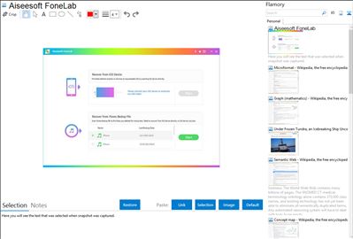 Flamory helps you capture and store screenshots from Aiseesoft FoneLab by pressing a single hotkey. It will be saved to a history, so you can continue doing your tasks without interruptions. Later, you can edit the screenshot: crop, resize, add labels and highlights. After that, you can paste the screenshot into any other document or e-mail message.