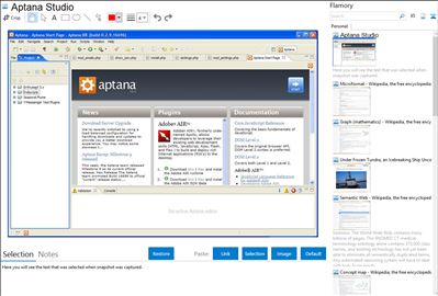 Flamory helps you capture and store screenshots from Aptana Studio by pressing a single hotkey. It will be saved to a history, so you can continue doing your tasks without interruptions. Later, you can edit the screenshot: crop, resize, add labels and highlights. After that, you can paste the screenshot into any other document or e-mail message.