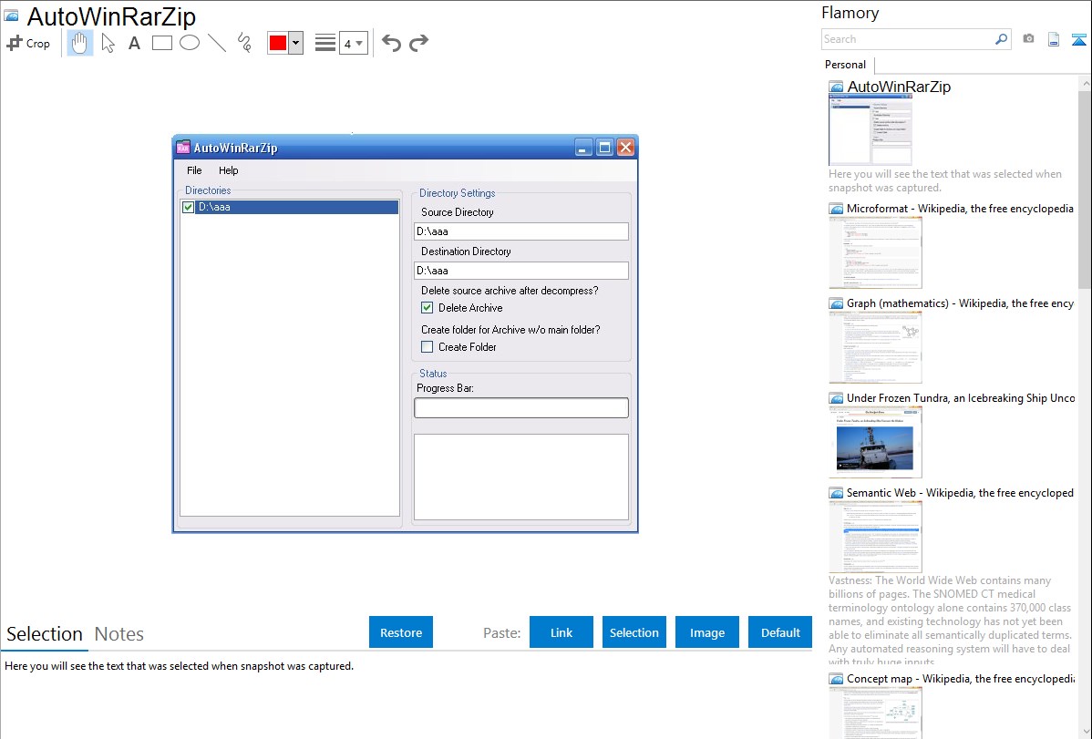 • Automatically copy selected text from AutoWinRarZip and save it to Flamory history