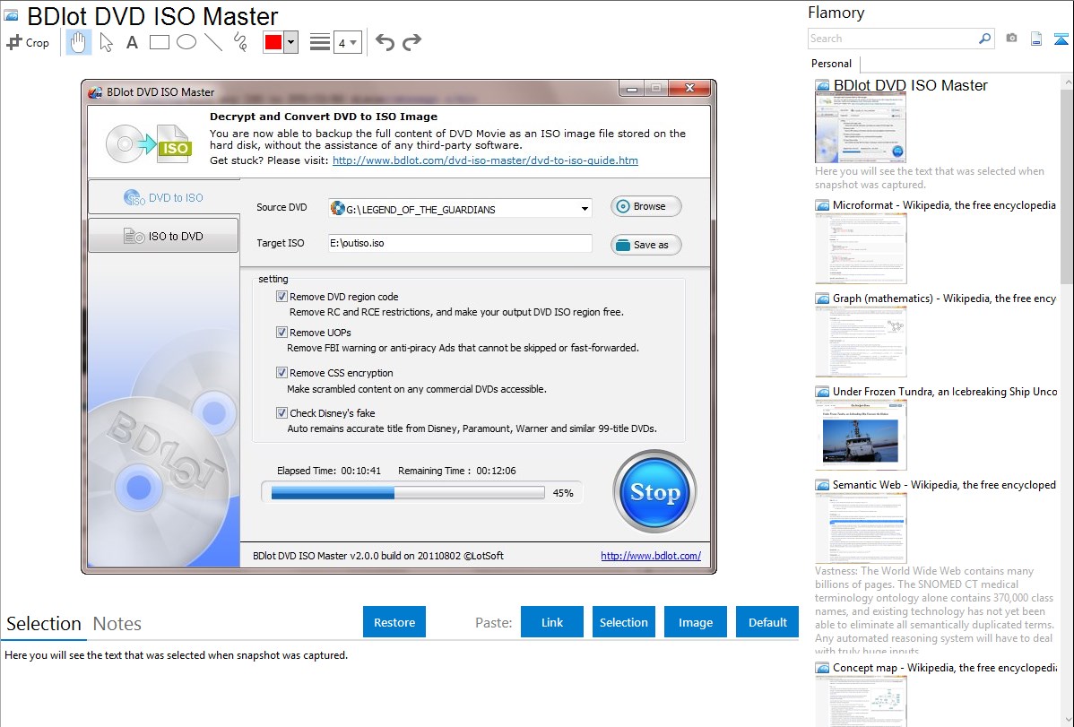 • Automatically copy selected text from BDlot DVD ISO Master and save it to Flamory history