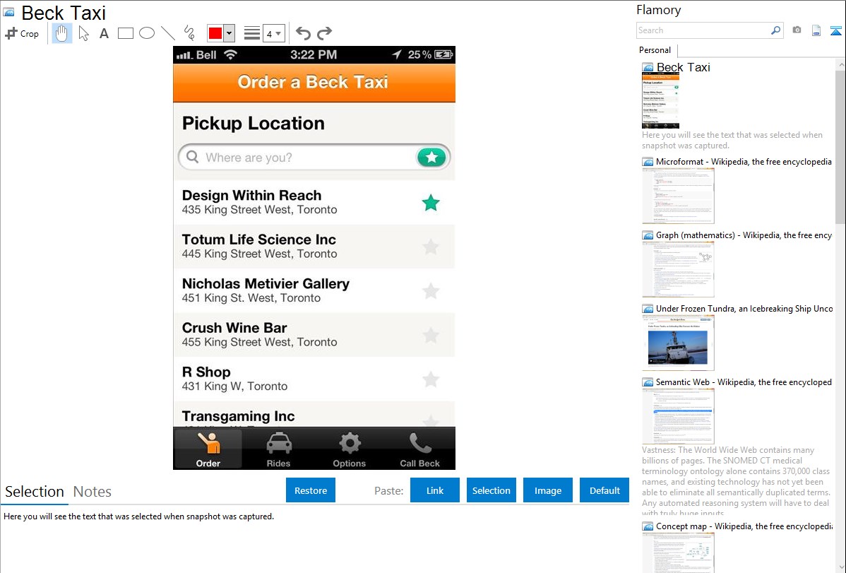Flamory provides advanced bookmarking for Beck Taxi. It captures screen, selection, text on the page and other context. You can find this bookmark later using search by page content or looking through thumbnail list.