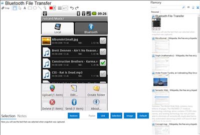 Flamory helps you capture and store screenshots from Bluetooth File Transfer by pressing a single hotkey. It will be saved to a history, so you can continue doing your tasks without interruptions. Later, you can edit the screenshot: crop, resize, add labels and highlights. After that, you can paste the screenshot into any other document or e-mail message.